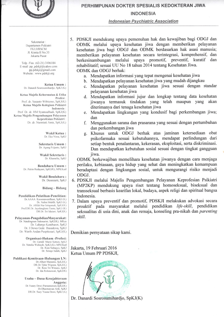 Surat Pernyataan PDSKJI Tentang LGBT (Hal 2)